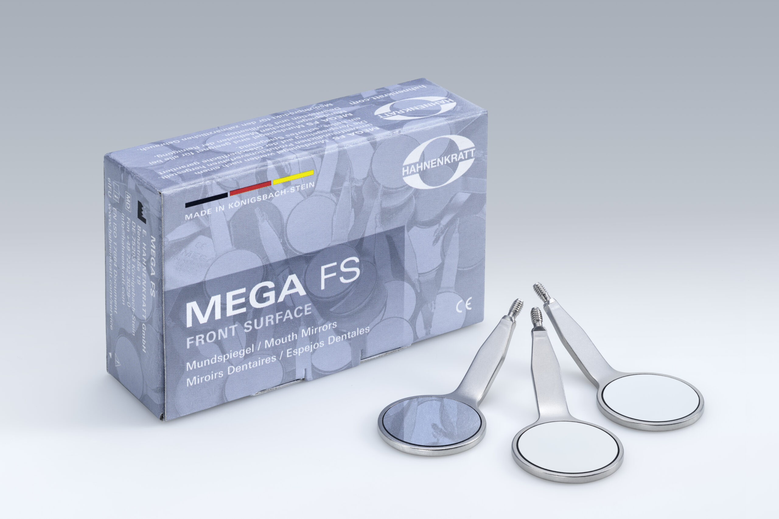 Chemically resistant, even against acids, high resistance against disinfection and sterilization thanks to rhodium coat on the glass surface. No corrosion due to high stability. No distortion with exact sharpness and contrast up to the smallest details. Bright reflection with matt finished stainless steel. Comfort cheek retraction.